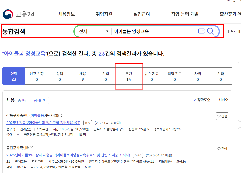 - 교육과정 검색: ‘아이돌보미 양성과정’ 검색