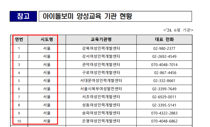 👉 전국 57개소 아이돌봄 양성교육기관 다운로드: