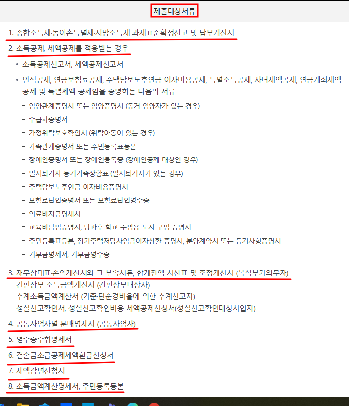 종합소득세 정기신고 제출서류