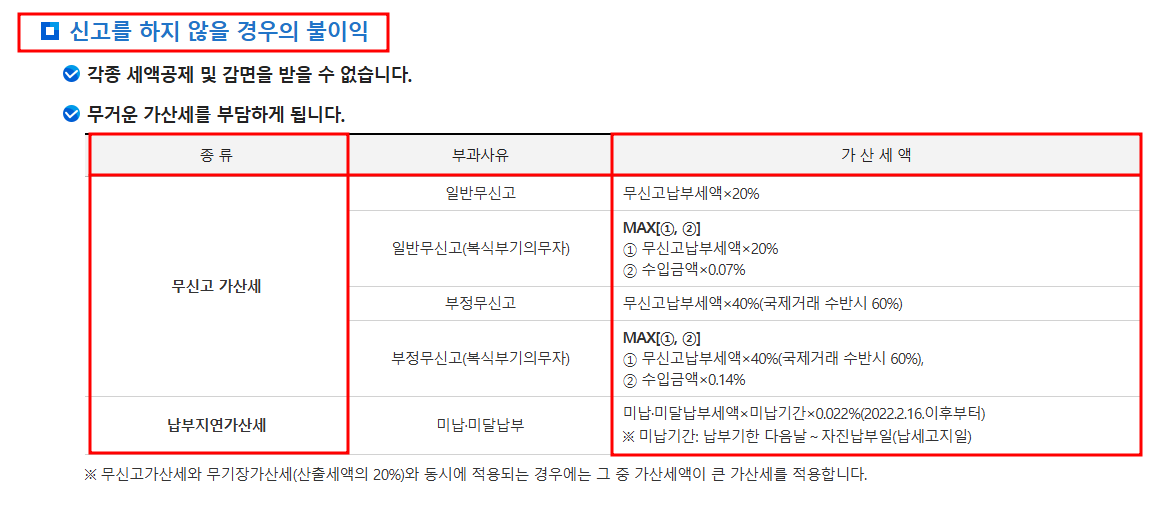- 신고 안 하면: 납부해야 할 세금의 20% 추가 부담